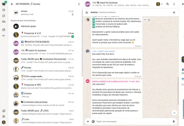 Comunidade com dezenas de grupos, +1.5k membros e crescendo. Conecta pessoas para gerar negócios em subgrupos de interesse mútuo, como Business Matches, Conteúdos, Eventos e Causa Social.